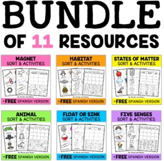 Interactive Science Sort Activity | Sorting Worksheet Bundle + Free Spanish
