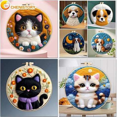 Cat Needle Felt Painting Starter Kits For Adults DIY Making Kit Animal Wool Felting Painting Kit