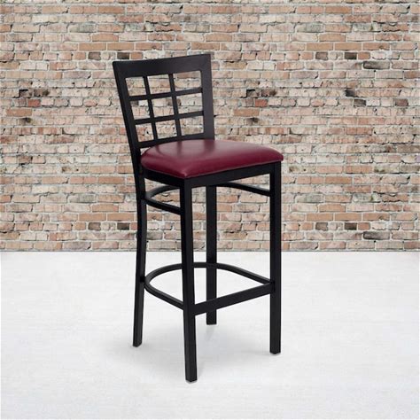 M27130-SWL-BLK-VS Window-Back Black Steel Frame Swivel Bar Stool
