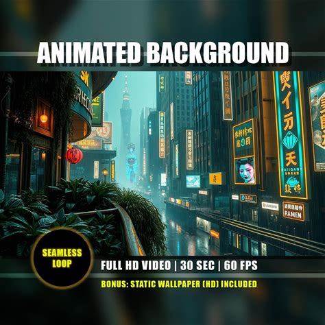 Animated Background - Sci-Fi Cityscape | Japanese Geisha Cyberpunk Rainy City Live Wallpaper | Vtuber Youtube Twitch HD Stream Loop Overlay