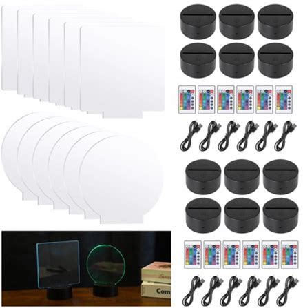 4 Pieces 3D Night LED Light Lamp Bases 6 Pieces Clear Acrylic Sheets LED Display Base Blanks Acrylic