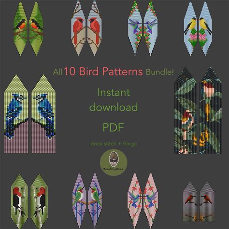 10 Bird Earring Bead Patterns Bundle : Miyuki Delica Brick Stitch PDF Tutorial