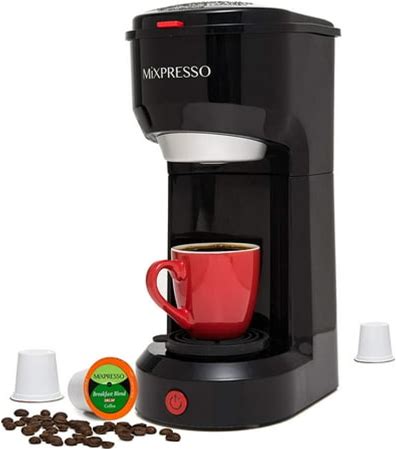 Mixpresso 2 in 1 Single Serve Coffee Machine Mini Coffee Maker Compact K Cup Compatible, Black 14 Oz
